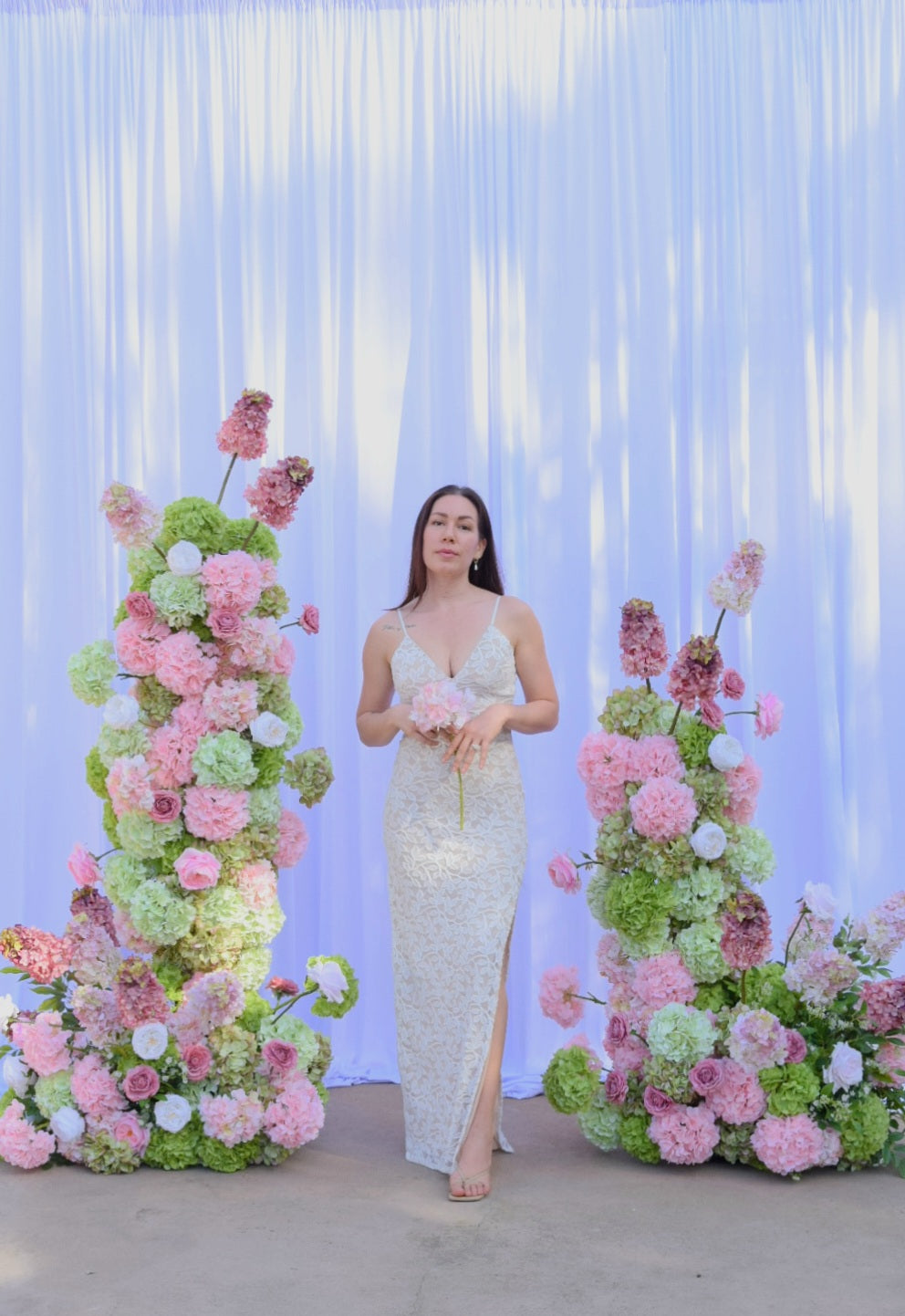 - Heather Arch (6ft H left + 4.5ft H right): The ceremony statement piece!